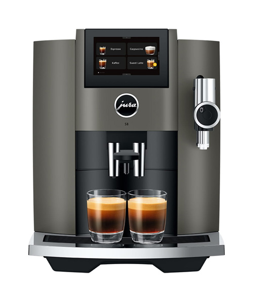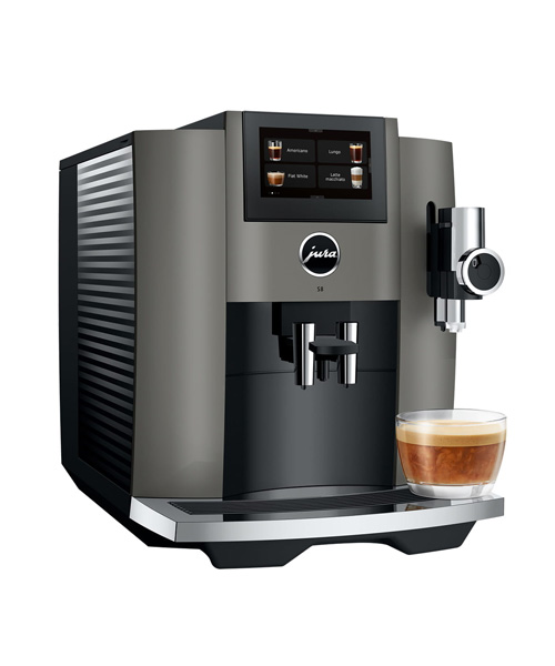 Jura S8 odiše elegancijom i kvalitetom, predstavlja sam vrh kompaktne klase Jura proizvoda. Impresionira svojim mogućnostima poput one touch odabira jedne od 27 različitih napitaka i pripremanja savršene pene kojom se mogu pohvaliti jedino aparati iz profesionalne Jura linije.